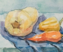 Задание 1 по предмету "Живопись" - на листе формата А3, фрукты или овощи 3 - 4 штуки. Материал - гуашь.