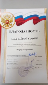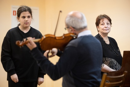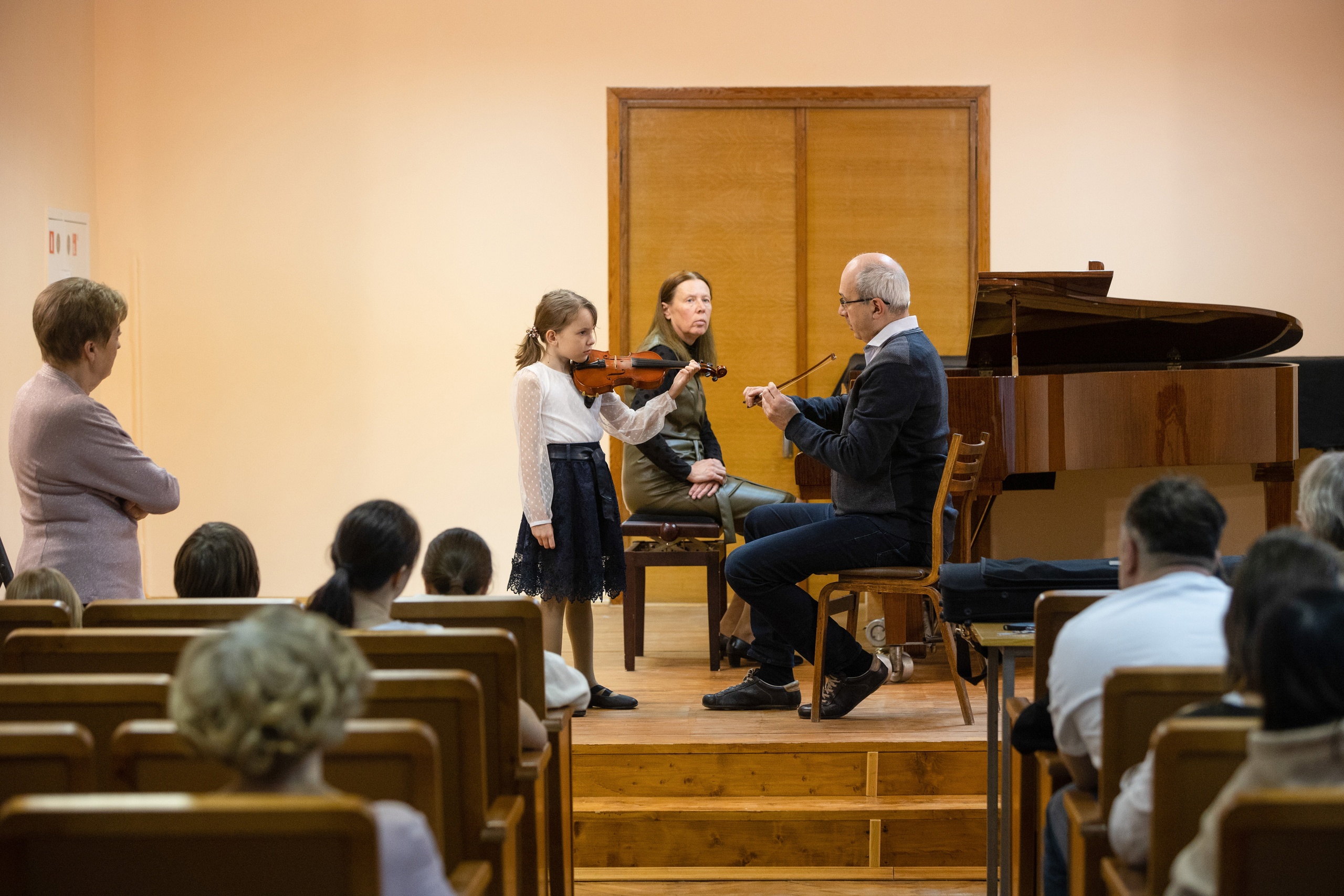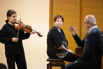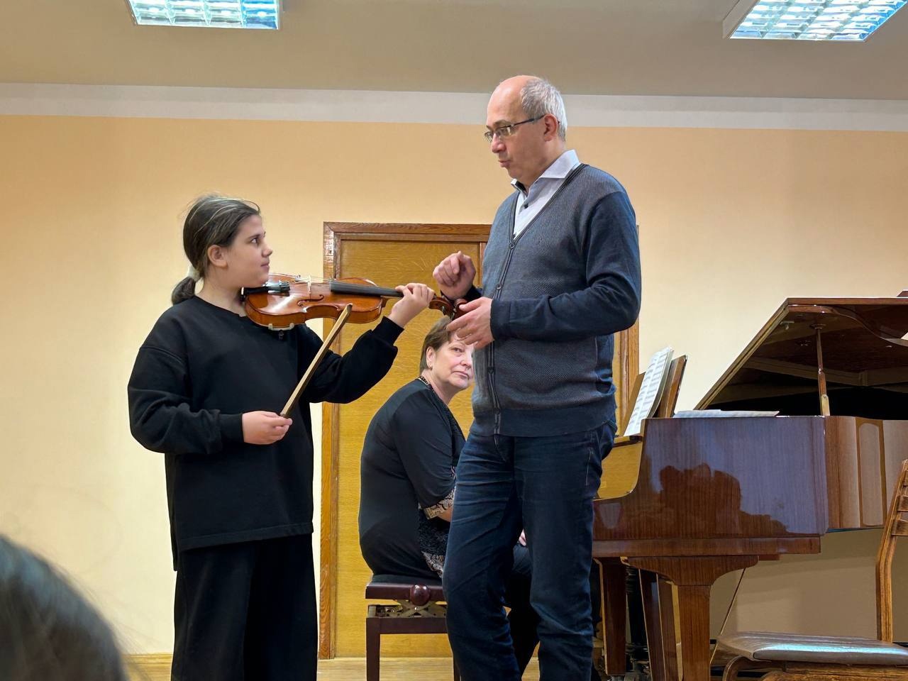 "Родители Софии Михалёвой, участницы мастер-класса."Впечатления от мастер класса яркие! Очень дружественная атмосфера была на уроке. Много ценных замечаний по поводу постановки рук и пальцев, очень интересные ассоциации, непринужденное общение, много юмора."Татьяна Богоявленская, преподаватель музыкальной школы по классу фортепиано, концертмейстер по классу скрипки.