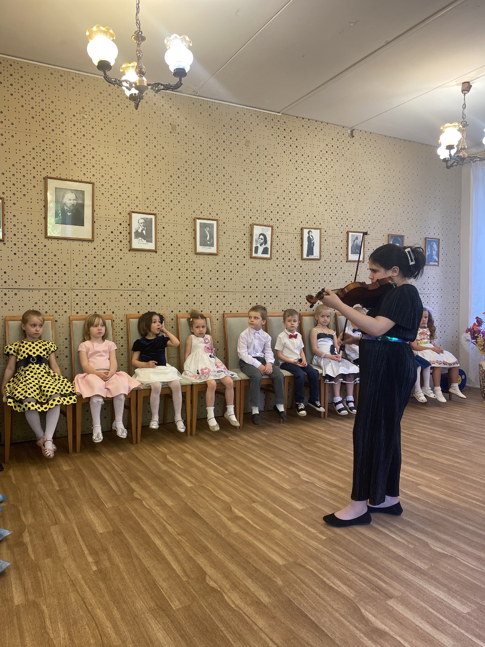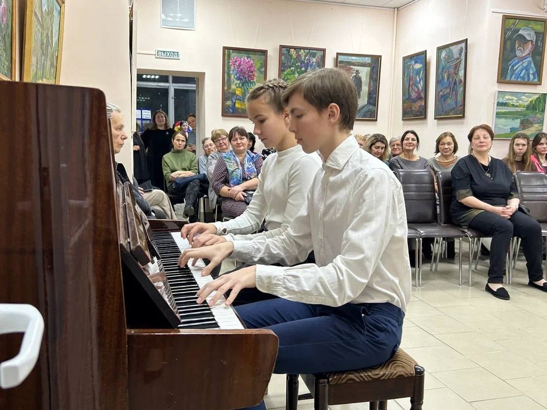 Наталья Леонидовна Новосёлова пришла на мастер-класс с детьми Юрой и Полиной, которые в этом году пришли заниматься скрипкой в "Камертон" (класс преподавателя Екатерины Пушкиной).