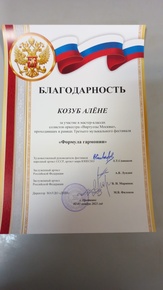 Хочется отметить высокий профессионализм, хороший контакт с детьми, педагогами, окружением. Способность деликатно указывать на ошибки и недочеты, и умение зажигать огонёк в детских глазах, показывая и рассказывая, как можно оживлять упражнения, вдыхая в них темперамент, даря душу, как читать музыку с выражением.