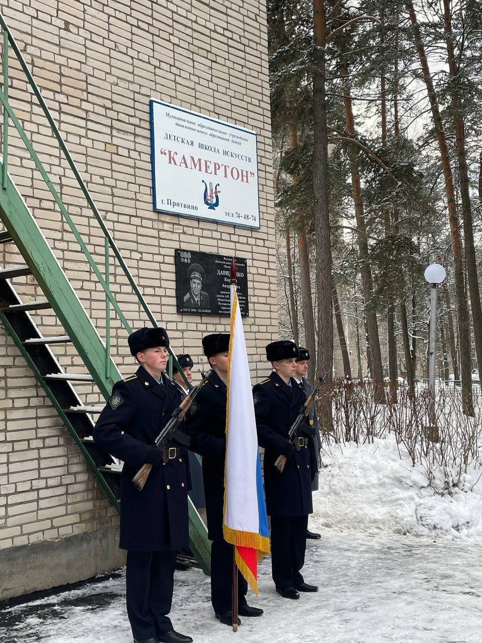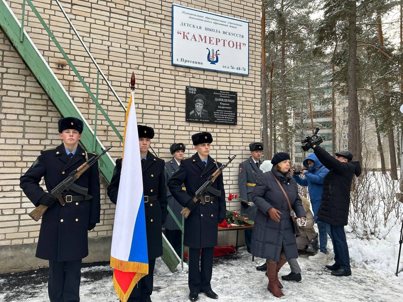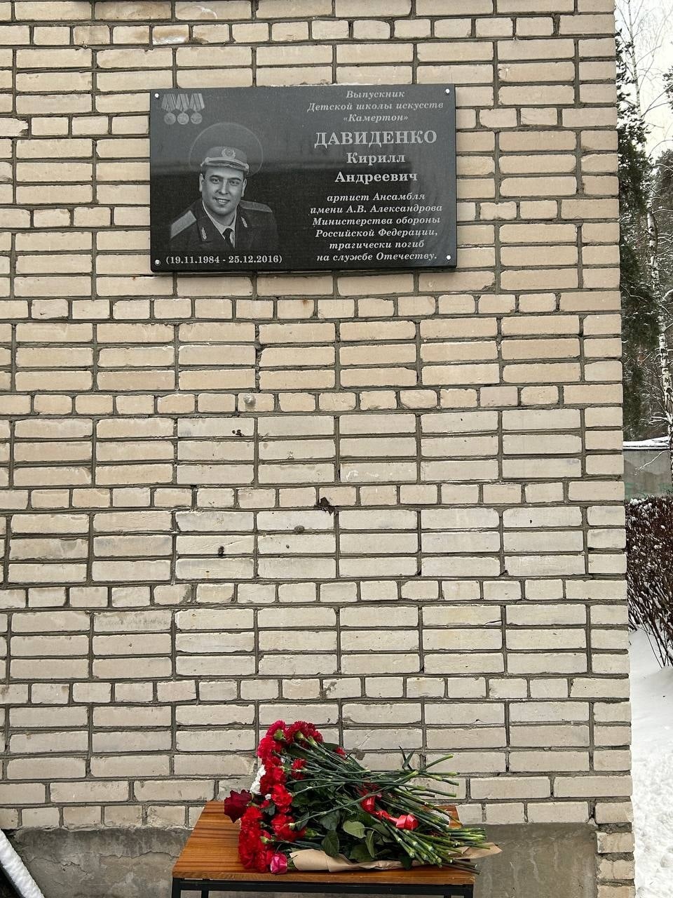2 декабря состоялось открытие мемориальной доски Кириллу Давиденко, артисту Ансамбля Александрова, выпускнику Детской школы искусств «Камертон», погибшему на службе Отечеству 25.12.2016г.